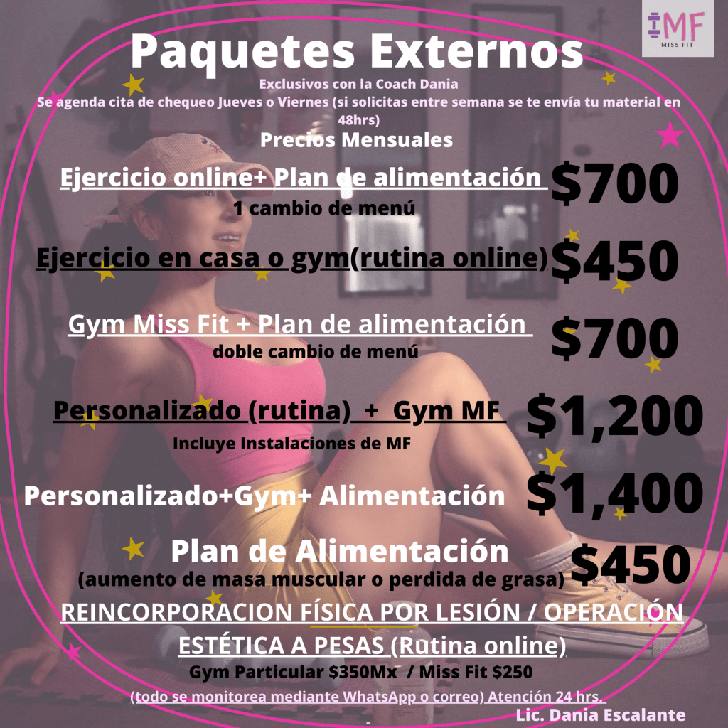 Conoce Nuestras modalidades de entrenamientos: Online o en Miss Fit (instalaciones)